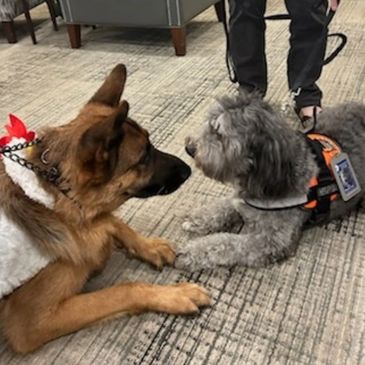 Our Therapy Dog Training Program prepares dogs and handlers to provide emotional support in hospitals, schools, nursing homes, and community settings. Training emphasizes temperament, socialization, obedience, real‑world readiness, and skills to interact with diverse populations.